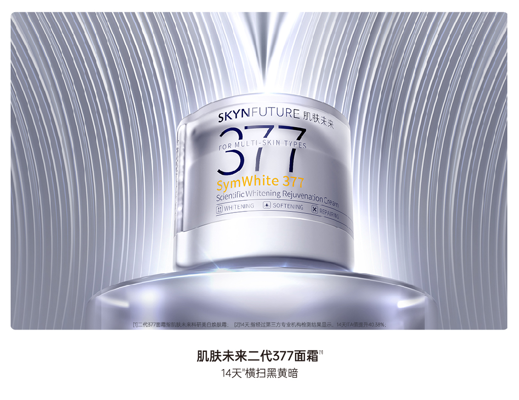 「始于377 超越377」肌肤未来率先与全球顶尖原料供应商德之馨深度共研打造377系列大单品,并成为国内研究推广377成分的先行者与引领者。