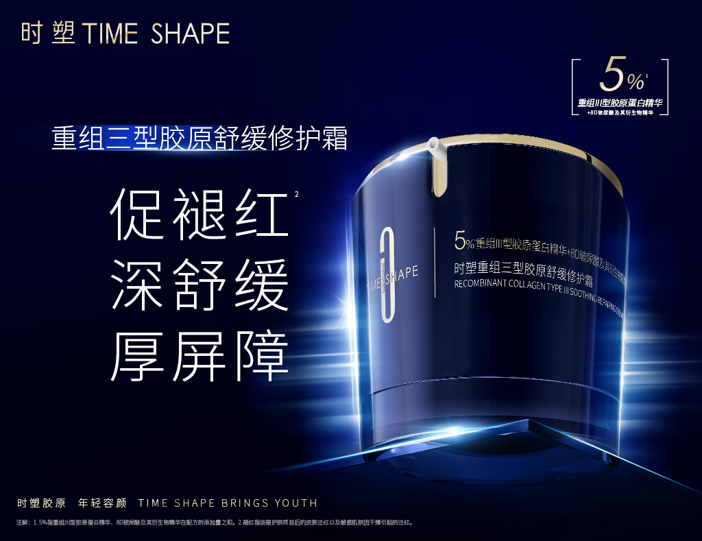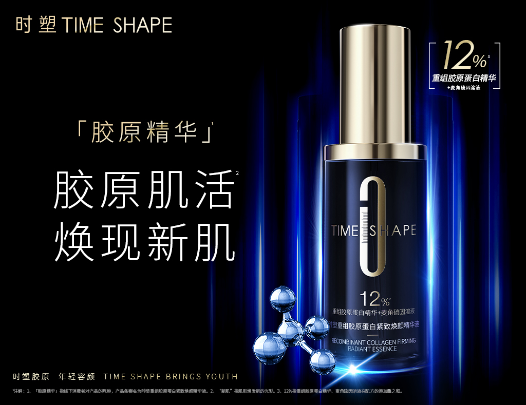 逆时重塑,胶原年轻。时塑TIMESHAPE,专研生物抗皱,致力于研创100%人源化重组胶原蛋白,为中国女性提供高科技、高功效、高安全的皮肤年轻方案。2023年,时塑生物实验中心基于I型重组胶原蛋白、III型重组胶原蛋白、XVII型重组胶原蛋白三大核心成分,利用前沿的结构生物学、DNA重组技术,成功研制出独特的「复人源®重组胶原蛋白」,并提出胶原定向管理理论,肌因抗皱的定制化方案,让中国女性重获胶原年轻的肌肤之美。